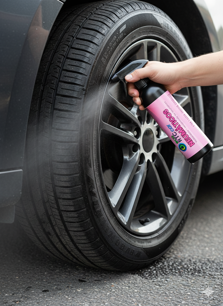 eco RTC car NEUMÁTICOS es un abrillantador ecológico diseñado para recuperar el brillo y la elasticidad de los neumáticos, protegiéndolos del desgaste sin usar disolventes. Fácil de aplicar, solo requiere pulverizar y dejar secar. Ideal para mantener un aspecto de neumático nuevo por más tiempo. Además, su fórmula especial respeta el caucho, evitando resquebrajamientos y asegurando una protección duradera.
